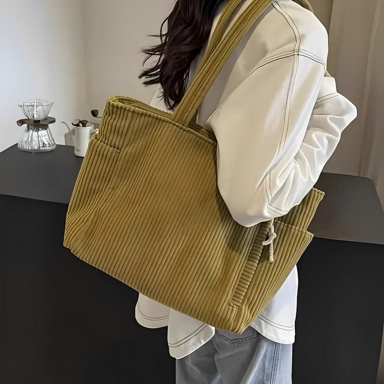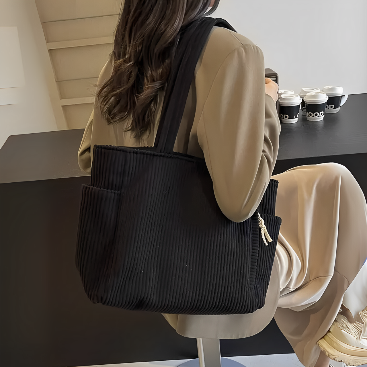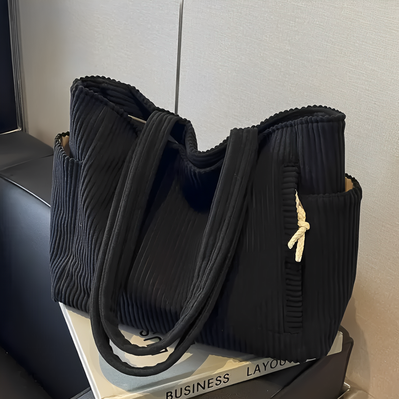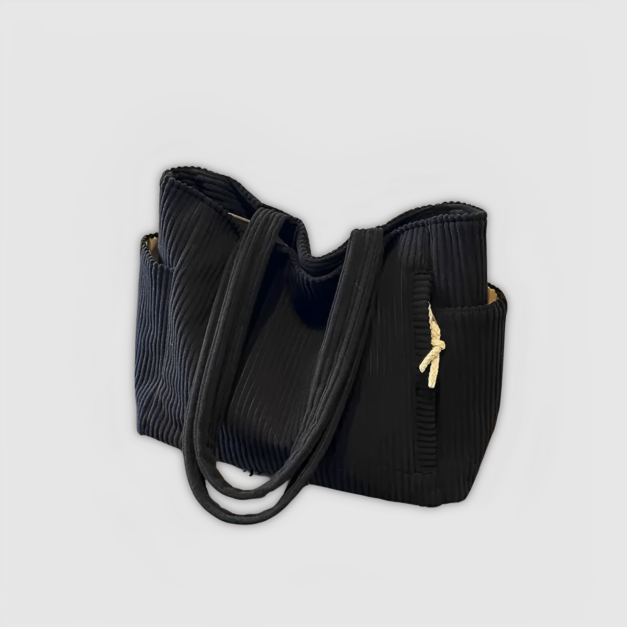 Con el bolso Reina de canalé con detalle de cordón, aportas un toque de estilo fresco y funcionalidad práctica a tu rutina diaria. Su diseño moderno con acento de cordón eleva cualquier look, mientras que su interior amplio ofrece espacio para todo lo que necesitas llevar contigo. Perfecto para el trabajo, la universidad o el tiempo libre: este bolso es tu compañero ideal para cada día.
