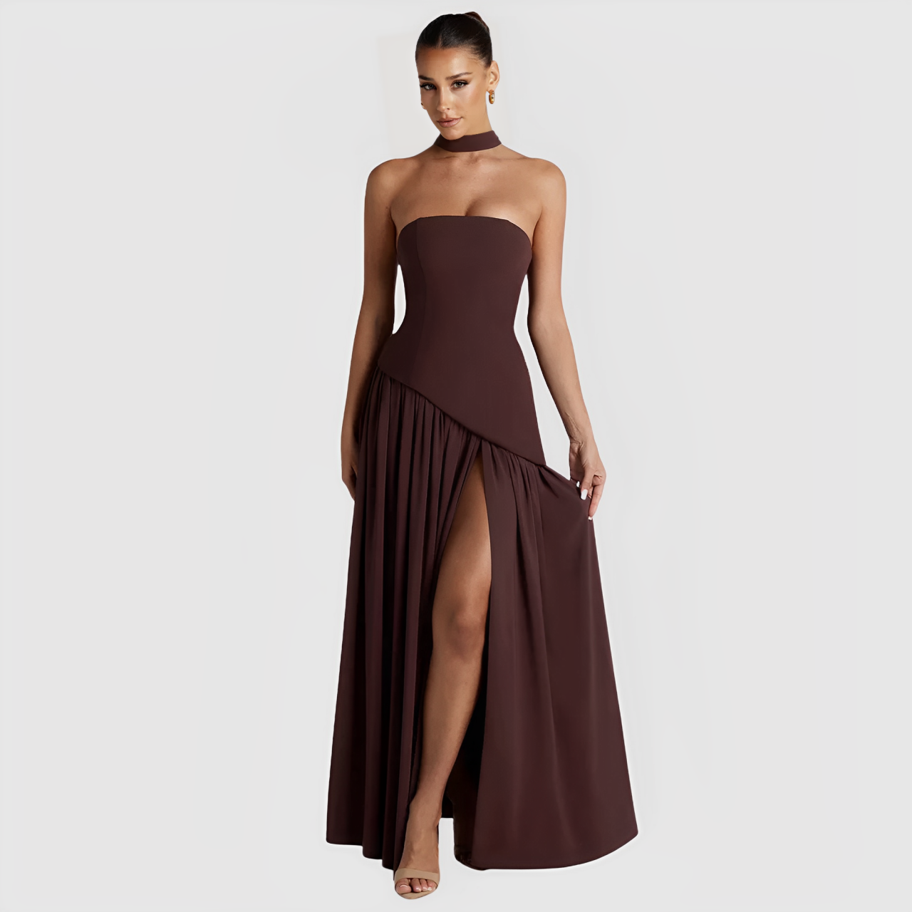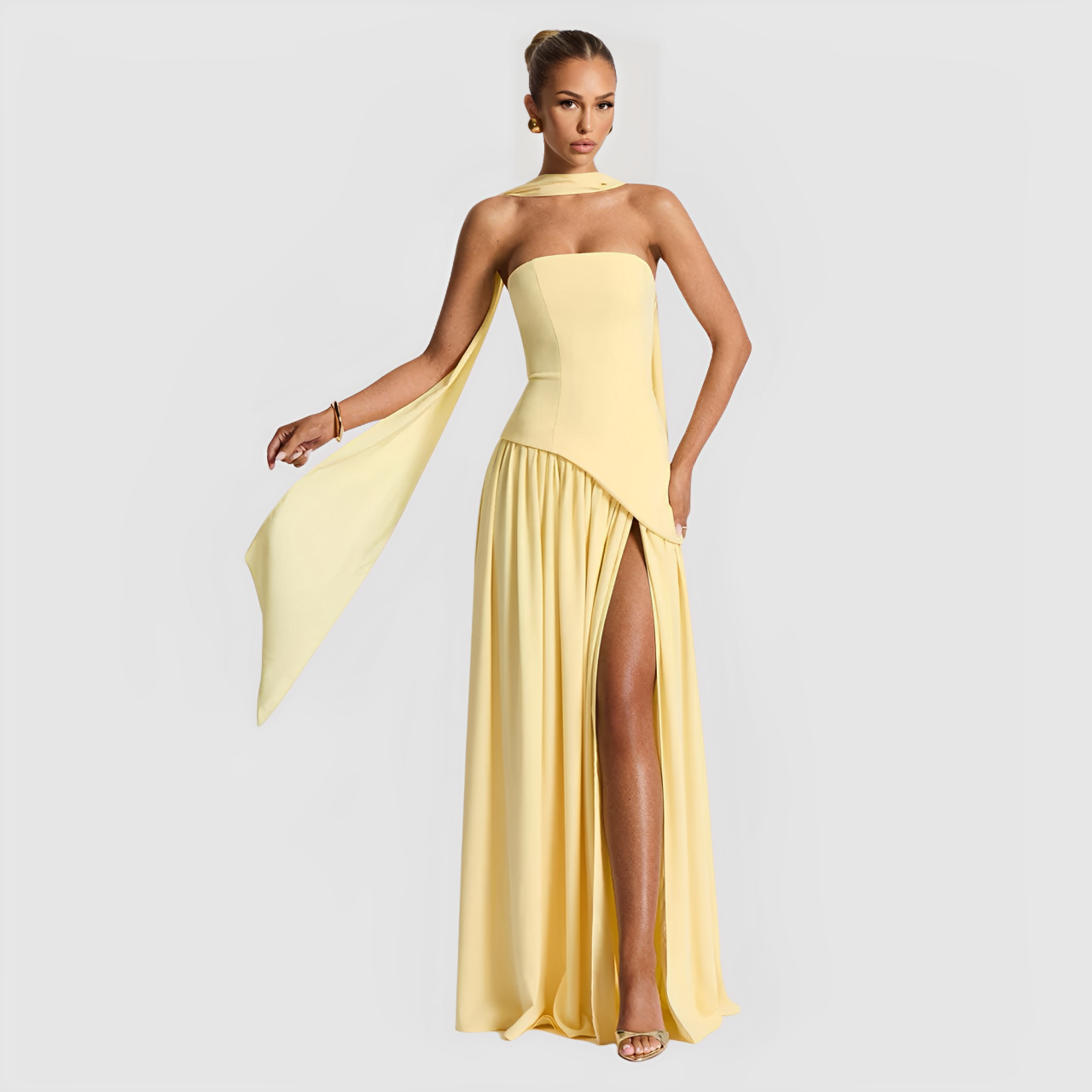 Ya sea en una fiesta al aire libre o una cena en la terraza, este vestido es tu momento dorado.