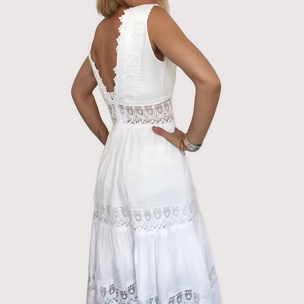 Ninfea™ | Vestido Midi sin Mangas de estilo Boho con Detalles de Encaje