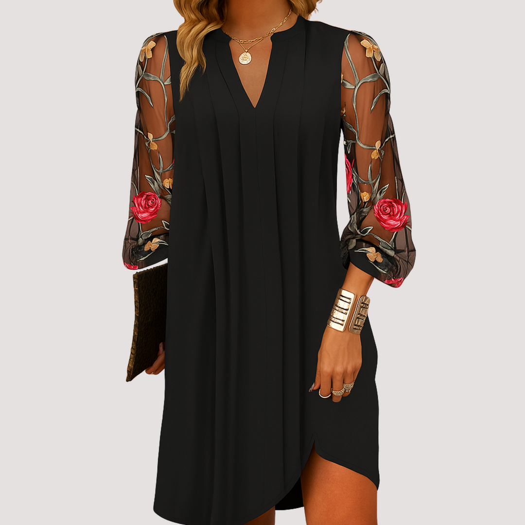 LA VENECIA | Salma™ - Elegante Minivestido con Escote en V y Delicadas Mangas Transparentes