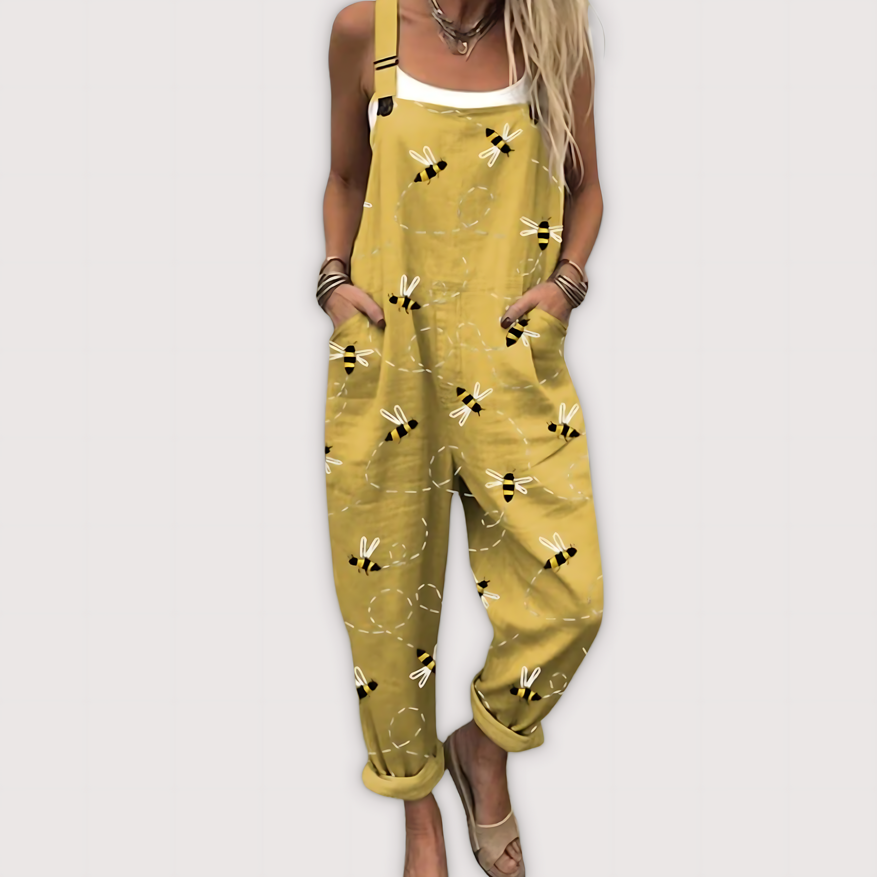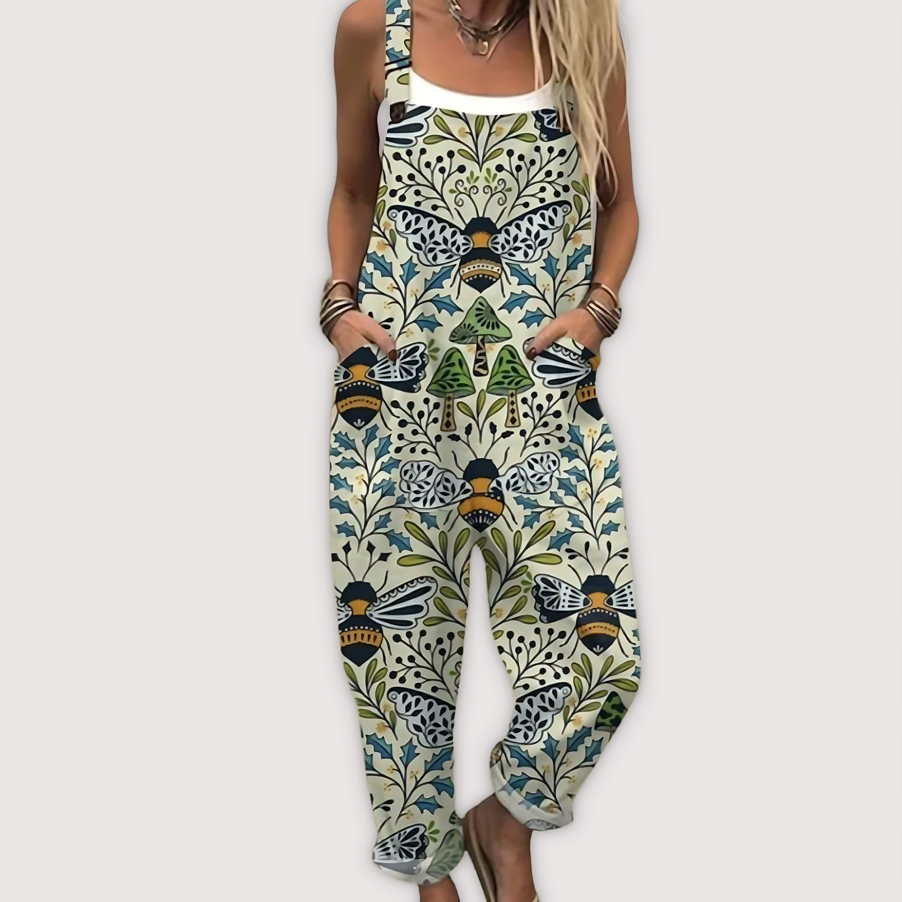 Sumérgete en la temporada soleada con nuestra Mono Vintage que se Mueve Contigo, una prenda ligera y artística diseñada para acompañarte en tu día a día, ya sea paseando por el mercado, trabajando en el jardín o reuniéndote con amigas para un almuerzo. Su estilo casual pero expresivo hará que quieras llevarlo una y otra vez.